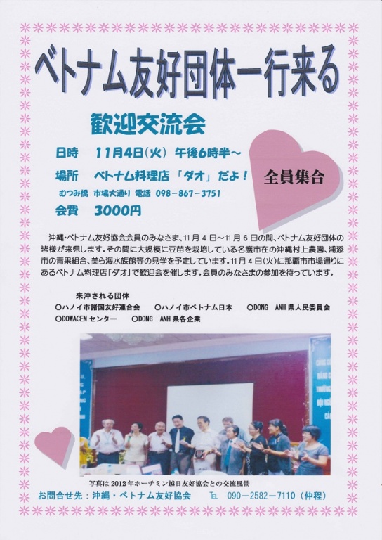 11月4日〜6日、ベトナム友好団体の皆さんが来沖しました。