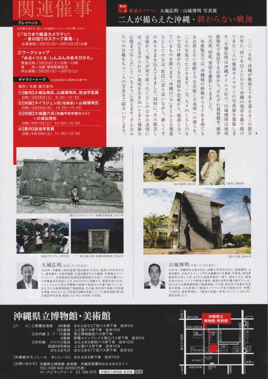 沖縄県出身の報道カメラマン大城弘明氏と山城博明氏の写真展が沖縄県立博物館・美術館で2015年3月28日(土)から4月19日(日)まで開催されます。