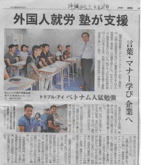 学習塾トリプル・アイグループは、昨年からベトナム人実習生の受け入れている。詳しくは、掲載記事をご覧ください。
