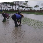 二期作の第一回目の田植え風景、ここでは全部が手植えでした