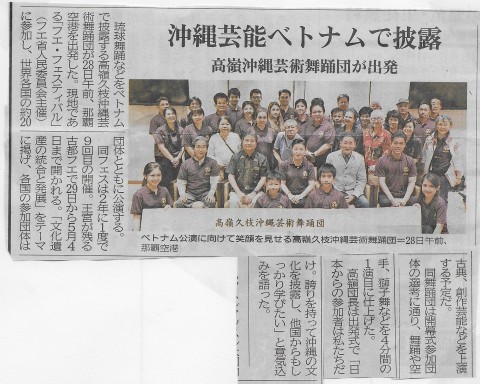 沖縄・ベトナム友好協会へ「フエ国際演劇フェスティバル」に沖縄芸能を招待したと今年で4度目オファーを頂きました。日本からは沖縄だけが選ばれておりフェスティバル関係者からの評価は高い。期待にそう得るべく出演団体を探していたところ、「高嶺沖縄芸術舞踊団」が快く受け入れてくれました。