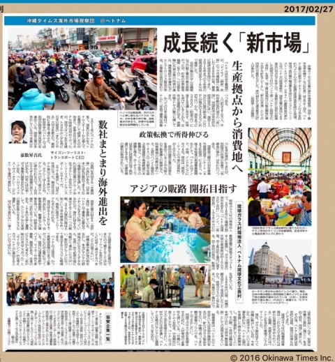 沖縄タイムス2月27日、p4 特集は、ベトナムの紹介記事で踊っている。新聞でこれほどまでに大きく紙面を飾った新聞は見かけた事がない。