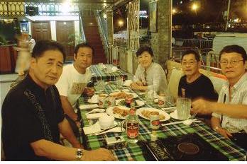夏の長い日もようやく傾く頃、サイゴン河のデナー・クルージングへ出かける。広い道路のバイクの奔流を無事渡り切って船に乗り込む。3階建て位の客船で、我々の陣取った1階には100名程の客か?