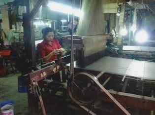 午前中、ハノイから近い観光地、木版画で知られたドンホー村(車で1時間)、陶器が世界的なブランドでもあるバッチャン村(車で30分)などと同様、シルク製品の製造・販売で有名なハドン村(車で20分)へ向かう。製造工場では、織機がガチャンガチャンと大きな音を立ててシルク布を織っている。筆者にとくに目当てのものはなかったが、つい最近神奈川へ帰った孫2人の顔が浮かび、ポシェットをいくつも買ってしまった。小さな商店街の道端で、砂糖黍やココナツのジユースなどでのどを潤した。