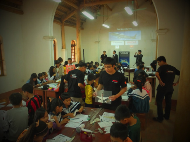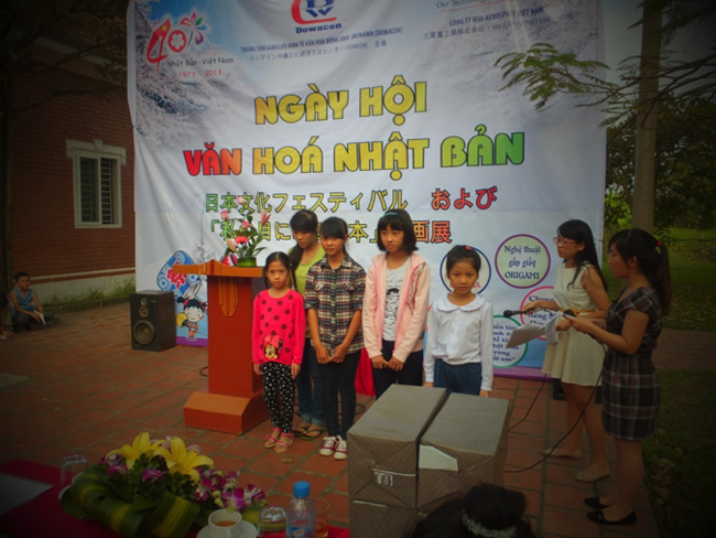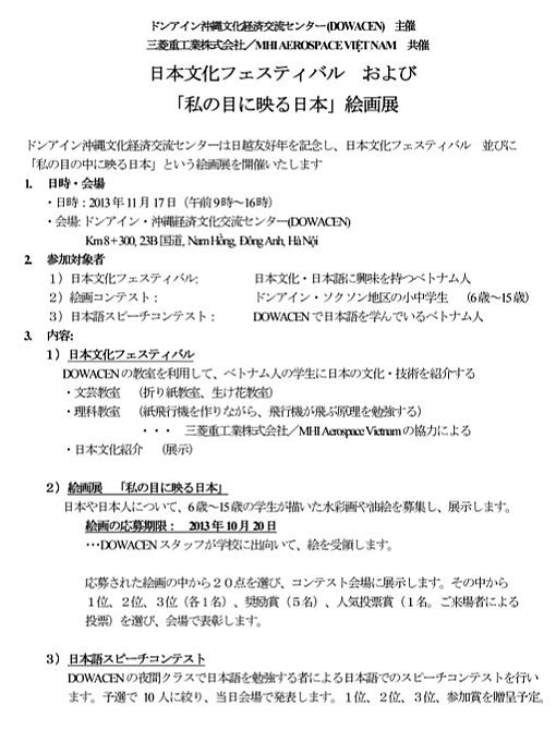 催しの内容を拝見するに、日本文化紹介のための生け花や折り紙、ベトナム小中学生による絵画教室、またDOWACEN学生による弁論大会、三菱様ご提供の紙飛行機制作実演会などなど盛り沢山の愉しくてためになる企画が並んで準備・実施へのご努力が偲ばれます。
